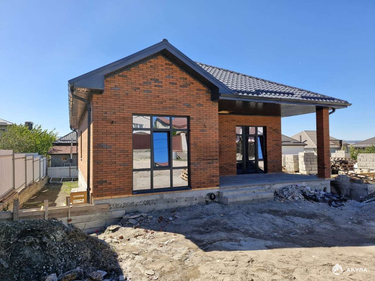 Материал стен: блок с облицовочным кирпичом, короед — надежность и долговечность.
