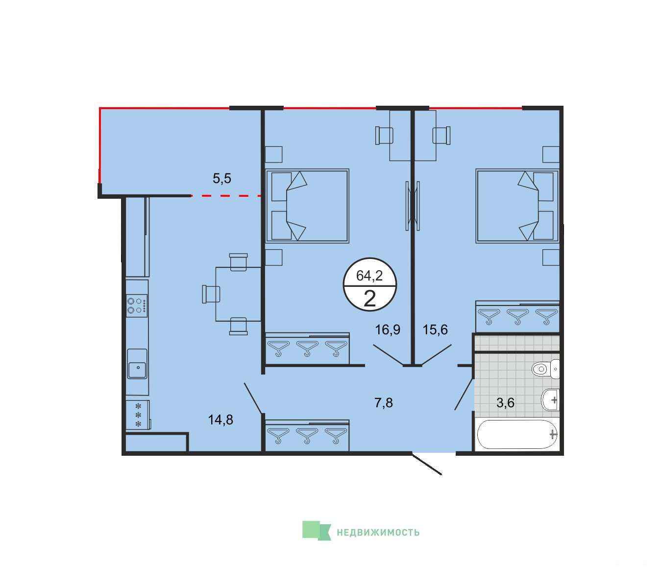 - 64 м²