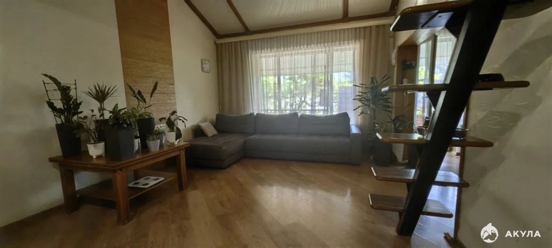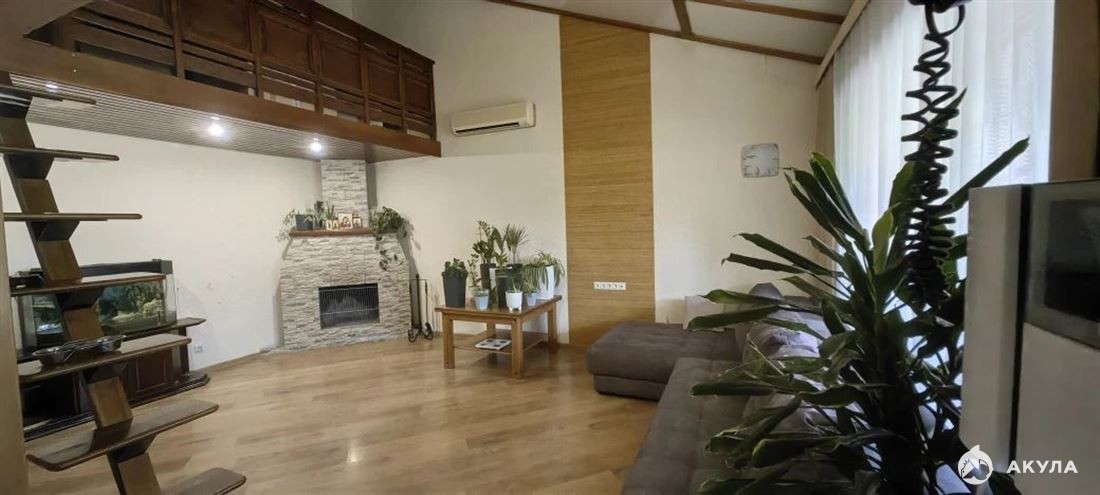 Первый этаж - прихожая, спальня, просторная гостиная с кухней, балкон, камин, раздельный санузел. Жилая мансарда из двух комнат. В каждой комнате кондиционер, мебель из натурального дерева, дубовые межкомнатные двери. Цокольный этаж - просторное помещение/тренажерный зал, большая кладовая, сауна, котельная.