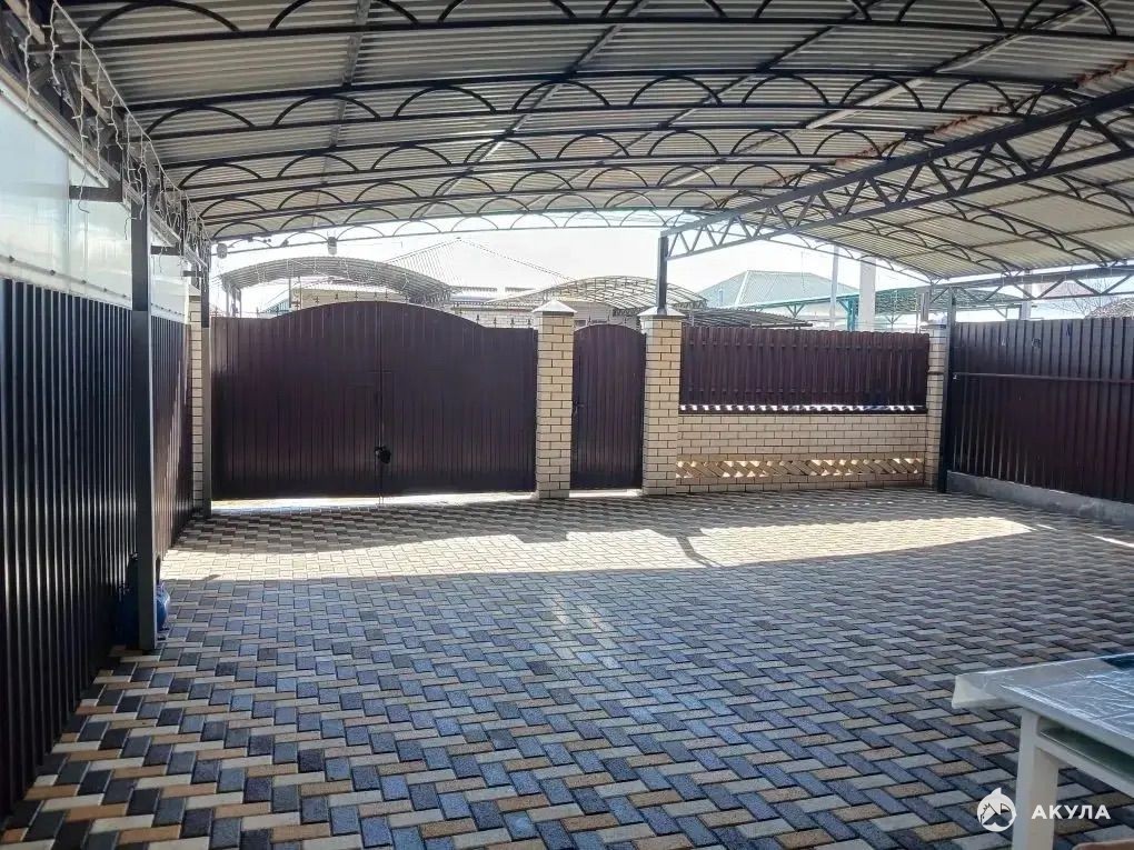 Во дворе брусчатка , навес для машины