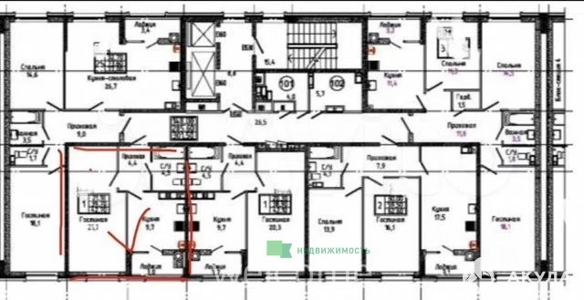 - 21.10 м²