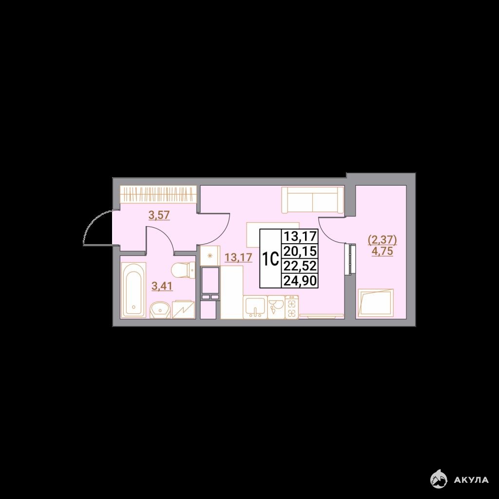 Уютная студия 24.9 м2 станет идеальным началом:
