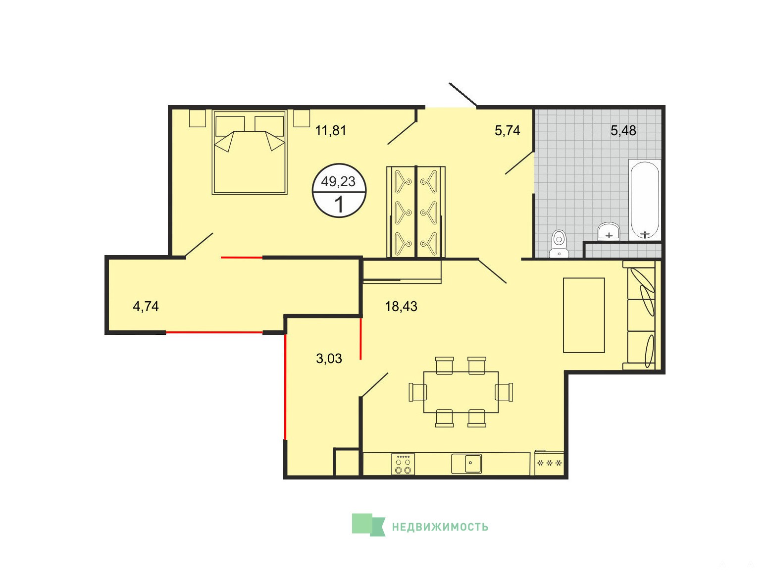 - 18.43 м²