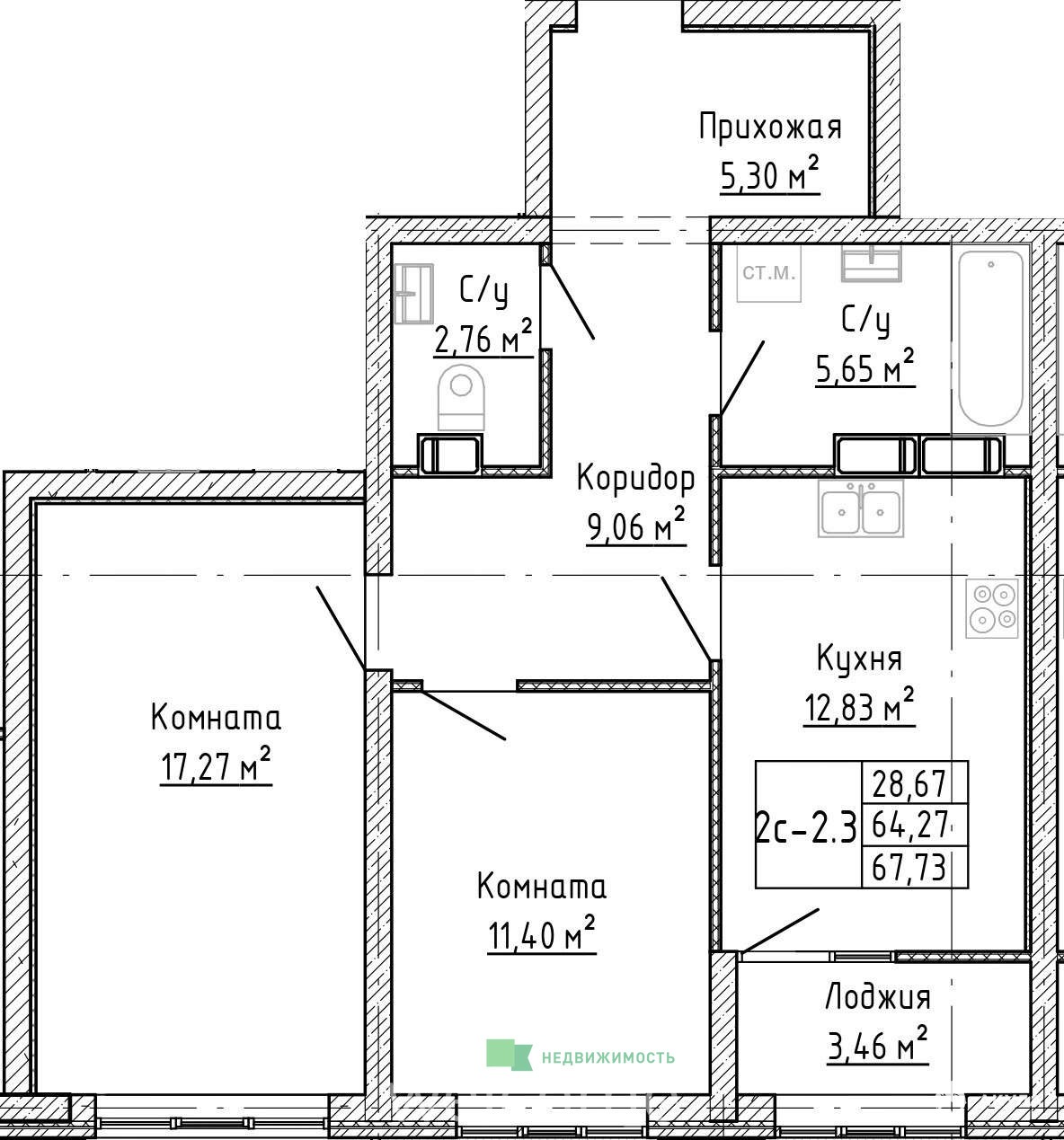 - 28.67 м²