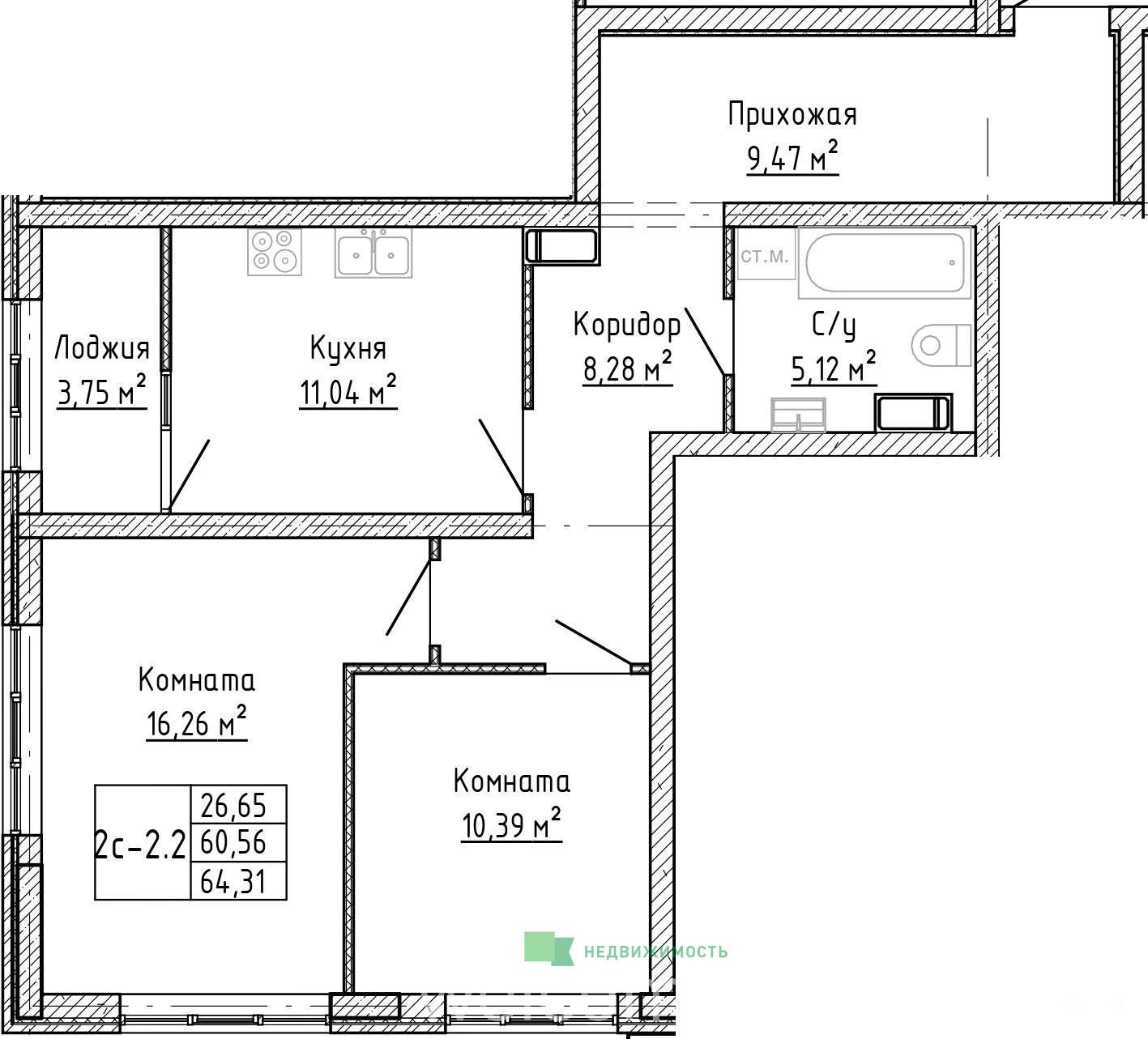 - 26.65 м²