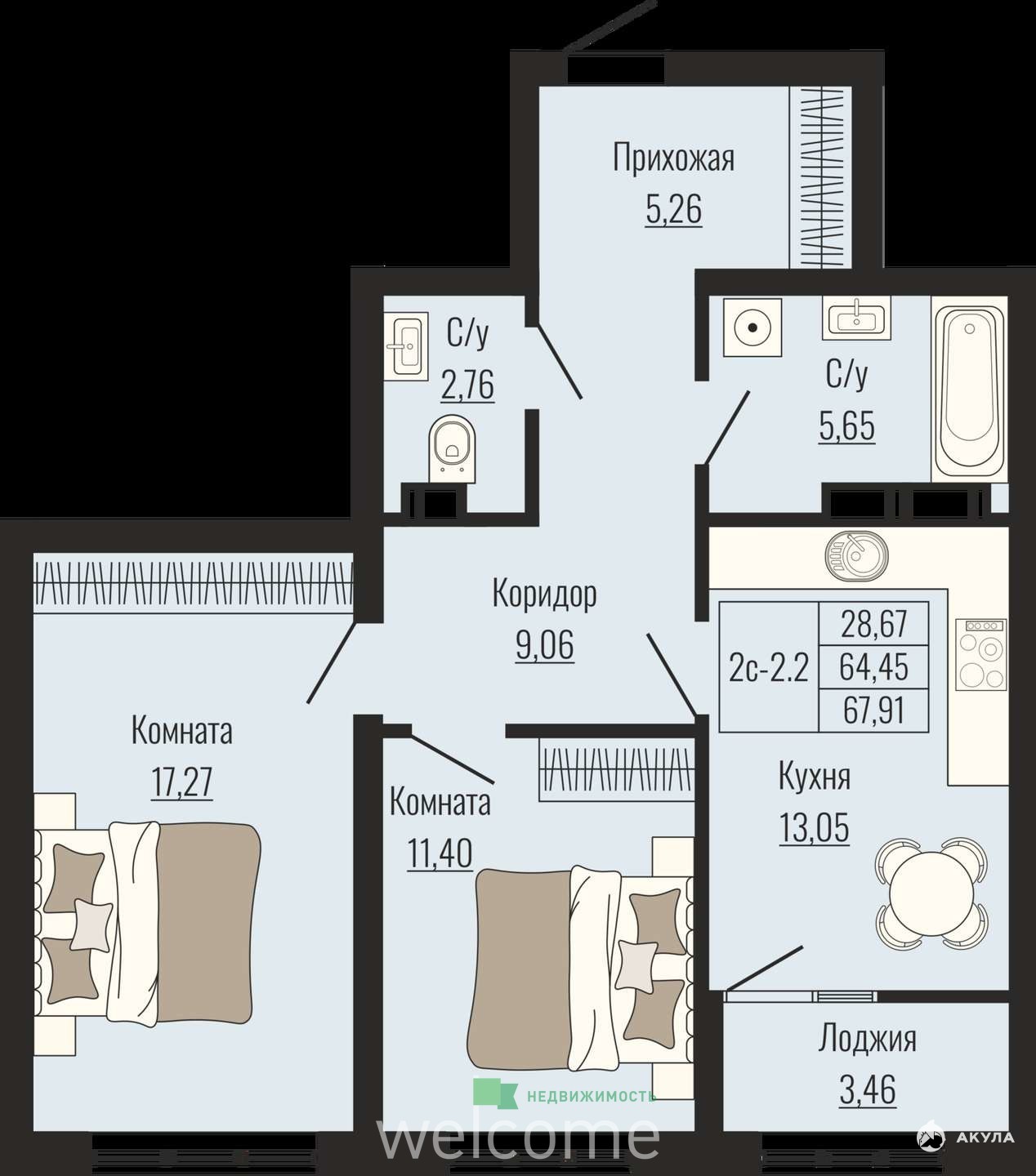 - 28.67 м²