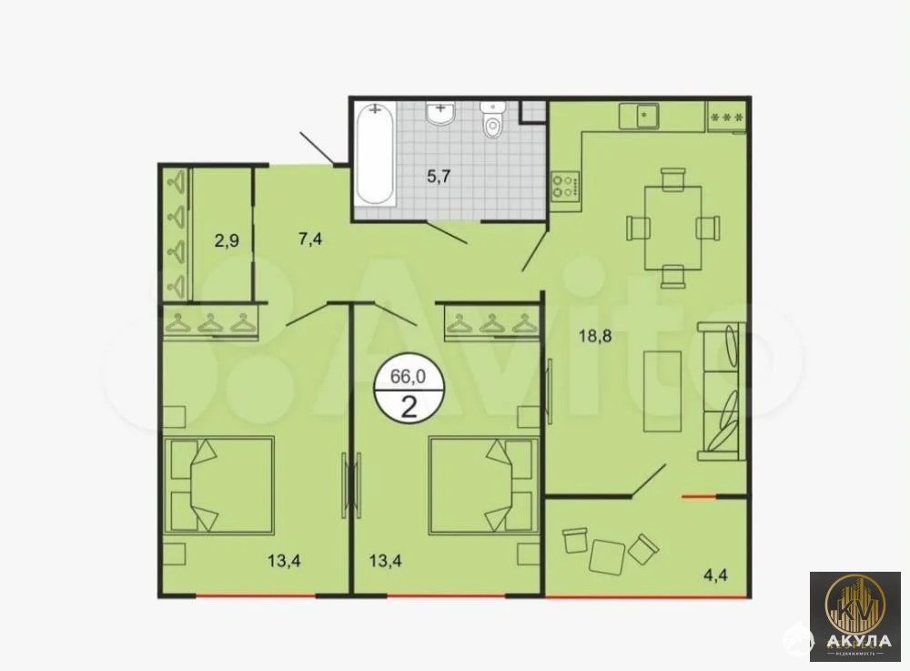 - 66 м²