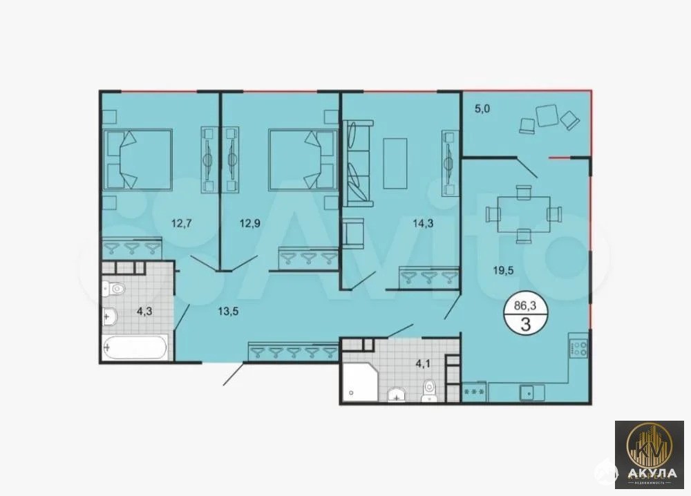 - 86 м²