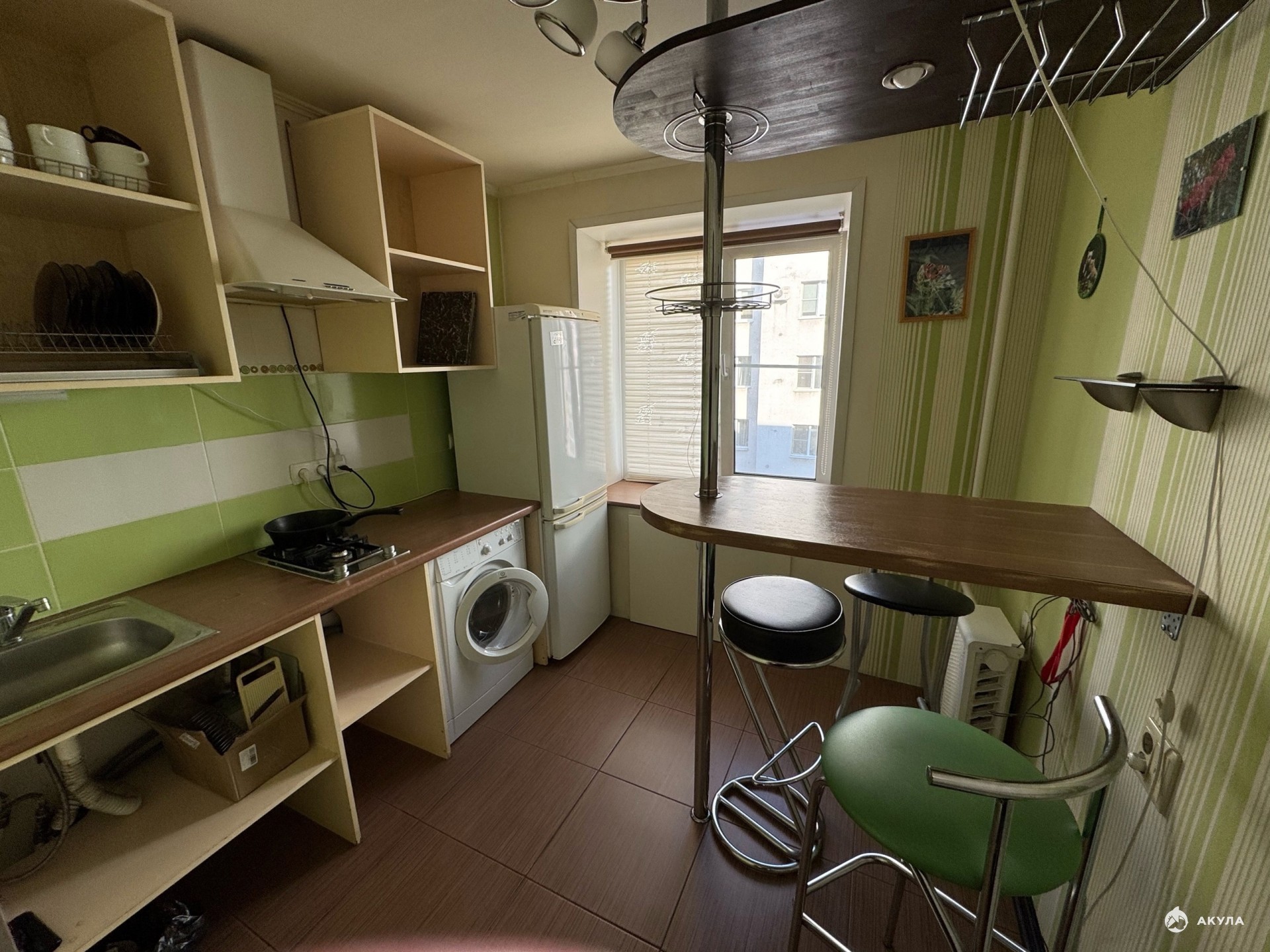 Квартира оснащена мебелью и бытовой техникой.